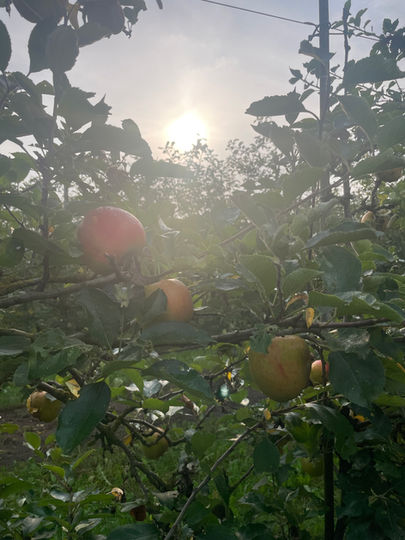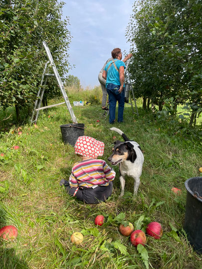 I efteråret 2025 høstede vi æbler på Erik og Dortes gård, Lystgården. Det gjorde vi, fordi vi gerne ville støtte den lokale frugtavl her hvor vi bor og lære mere om æbleplantage-livet. Det var en sjov og spændende måned med masser af tid ude i det fri, hvor vi havde glæden af mange frivillige hjælpende hænder undervejs. Det er der kommet en super lækker most ud af, som vi sælger her.